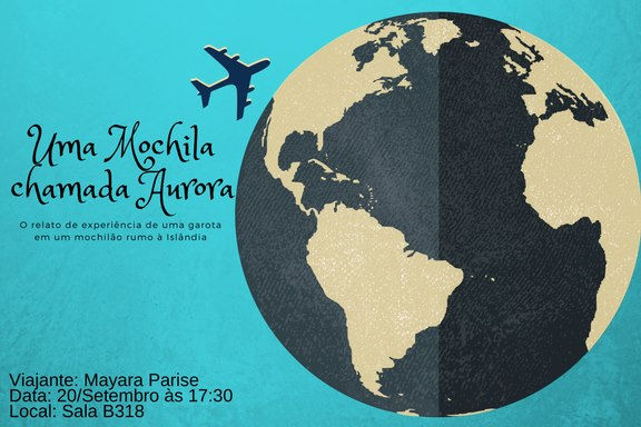 O PetMais Saúde convida a todos para: "Uma mochila chamada Aurora: O relato de experiência de uma garota em um mochilão rumo á Islândia." Realizada pela petiana Mayara Fernandes Parise. Dia 20/09/2017 -17:30 - sala B 318 Haverá emissão de certificados! Participem!!!